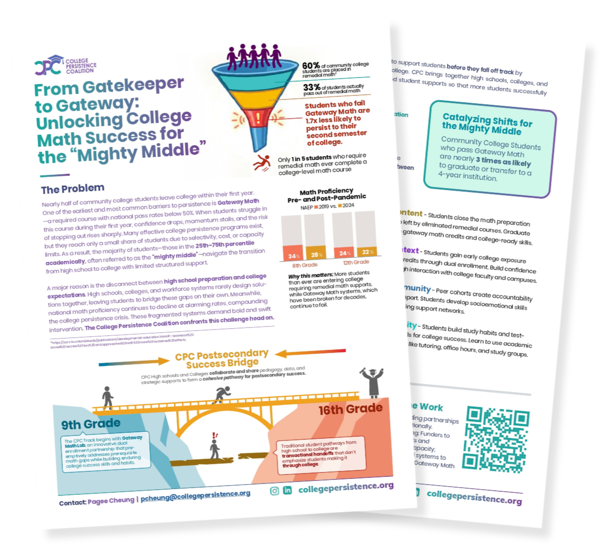 The College Persistence Coalition partners with K-12 schools, colleges, universities, and workforce organizations to build more connected pathways to postsecondary success. By aligning systems, strengthening instruction, and supporting innovation across sectors, CPC helps create the conditions students need to persist, graduate, and thrive.